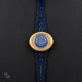 Zifferblatt: blau mit goldfarbenem Sternscheiben-Motiv, Anzeige über rot markierte Segmente